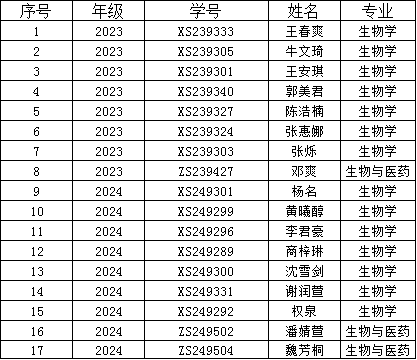 根据《黑龙江八一农垦大学研究生奖助学金评选及管理办法》(农垦校发〔2025〕83号)文件精神和《生命科学技术学院关于做好黑龙江八一农垦大学2025年研究生学业奖学金评选工作的通知》要求,经过学生自主申报,材料审核组审核,学院研究生奖助学金评审委员会评审,现将2025年研究生学业奖学金评选结果进行公示。