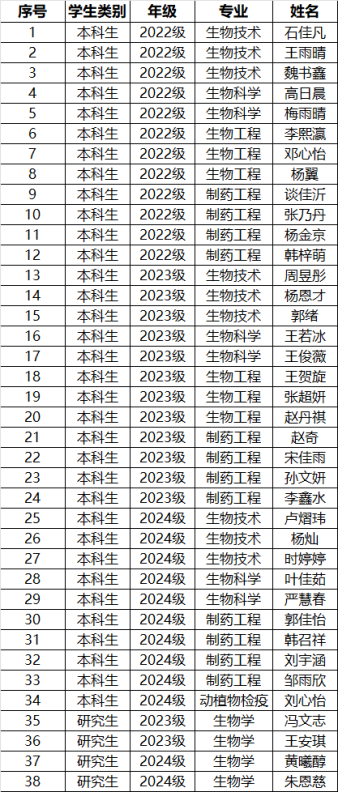 按照黑龙江省教育厅《关于评选表彰 2025 年黑龙江省普通高等学校“三好学生”的通知》的要求,生命科学技术学院2025年省三好学生经学院宣传动员、学生自主申报、资格审查、材料审核、量化评分,现将生命科学技术学院2025年省三好学生拟推荐学生名单向全院师生公示,详细名单见附件。