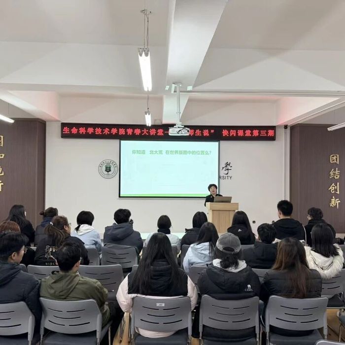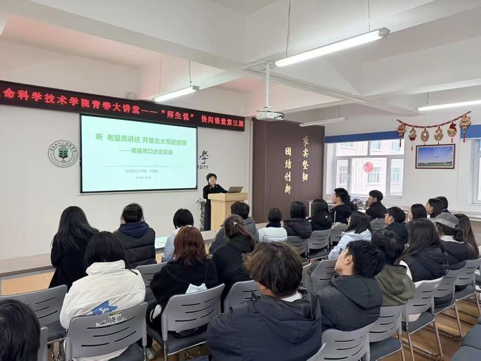 为引导青年学子传承红色基因,深刻感悟北大荒精神的时代内涵,生命科学技术学院于11月5日,在学生公寓1-2号连廊一站式学生社区举办“师生说”快闪课堂第三期。本次课堂特邀马克思主义学院副教授齐艳娟老师担任主讲,通过讲述多位北大荒老垦荒的鲜活故事,结合北大荒精神的价值与时代内涵,为同学们带来了一场深刻的精神洗礼。