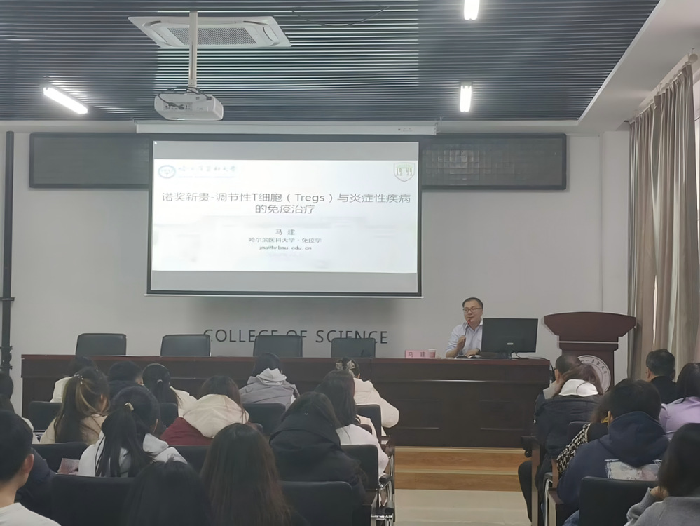 为全面提升师生科研创新能力,拓展学术视野,2025年11月15日下午,生命科学技术学院第44次“大家讲坛”特邀哈尔滨医科大学基础医学院免疫学教研室主任、博士生导师马建教授作专题学术报告。本次讲座由学院副院长王艳红主持,吸引了近百名师生参与。