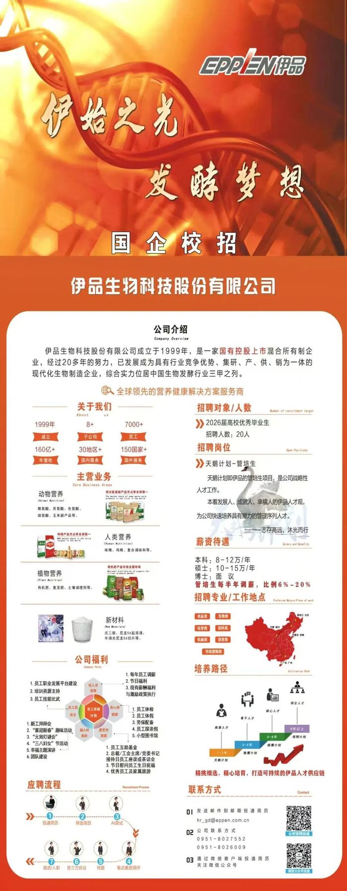 招聘信息丨伊品生物科技股份有限公司2026届校园招聘
