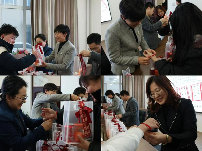 老师们为考研学子发放考研礼包,亲手为考生带上“逢考必过”的手绳,带给考研学子最真挚的祝福和最贴心的礼物。