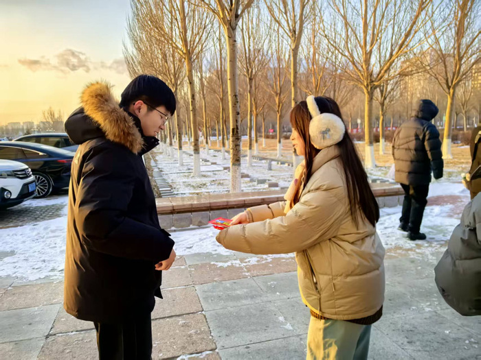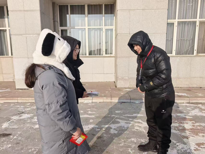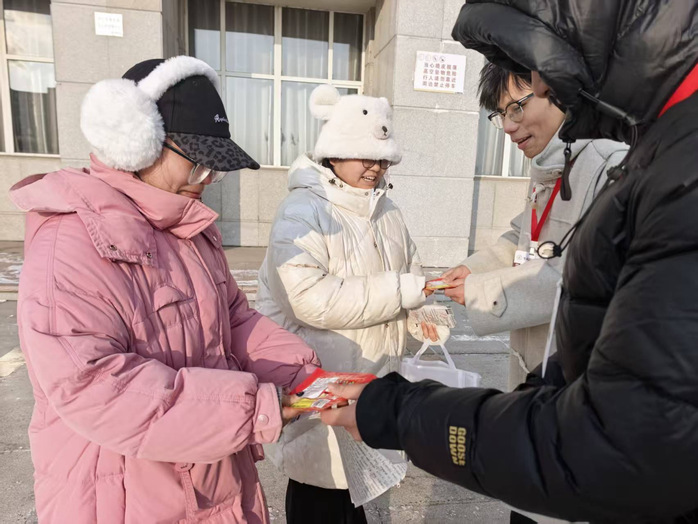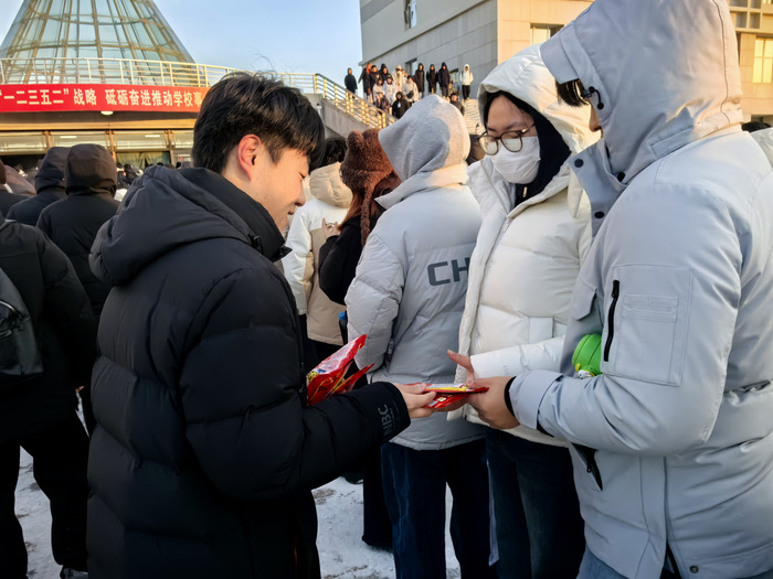 活动现场,生命科学技术学院的工作人员提前整理物资、规划流程,将一份份满载期许的暖贴逐一递到考生手中。“天气虽冷,但学院的关怀让我们心里暖暖的!”接过暖贴的学子们脸上洋溢着感动,纷纷表示这份“及时暖”既解决了冬日赴考的保暖需求,更让大家感受到了学院是坚实的后盾。工作人员还贴心叮嘱考生注意防寒保暖、调整心态,鼓励大家以饱满状态迎战考试,沉着发挥。