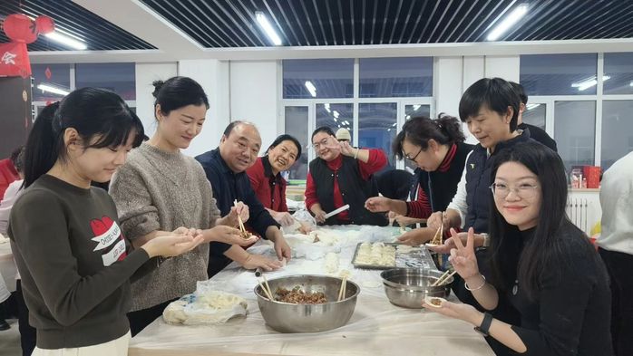 联欢会还穿插了趣味游戏与互动抽奖,现场欢声不断、暖意融融。活动最后,全体教职工携手包饺子,在协作中增进情感,在热气蒸腾中共话团圆,为2025年留下温暖而充满力量的收尾。