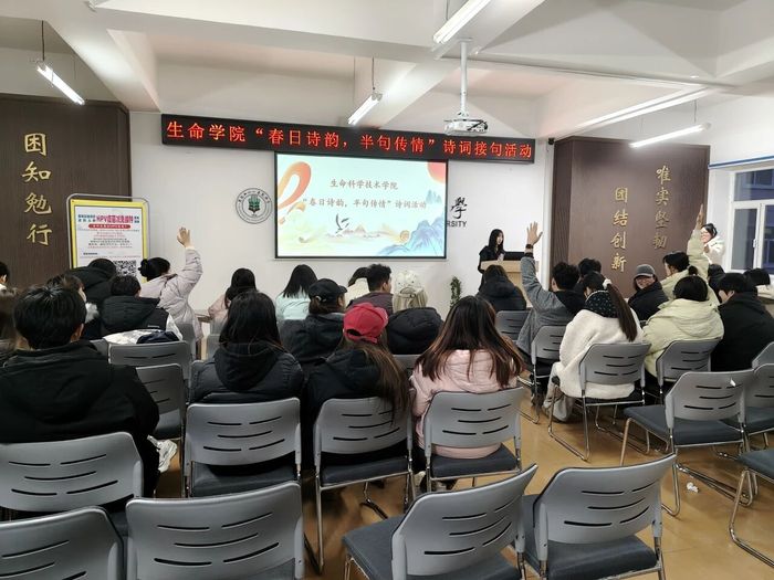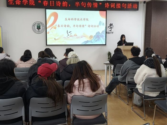 为传承中华优秀传统文化,激发学生对古典诗词的热爱,营造诗意盎然的校园氛围,生命科学技术学院于3月20日在学生公寓1-2号楼连廊一站式学生社区,成功举办“春日诗韵,半句传情”诗词接句活动。全院各专业学生踊跃报名,最终录取30名学子参与角逐,共品春日诗词之美。
