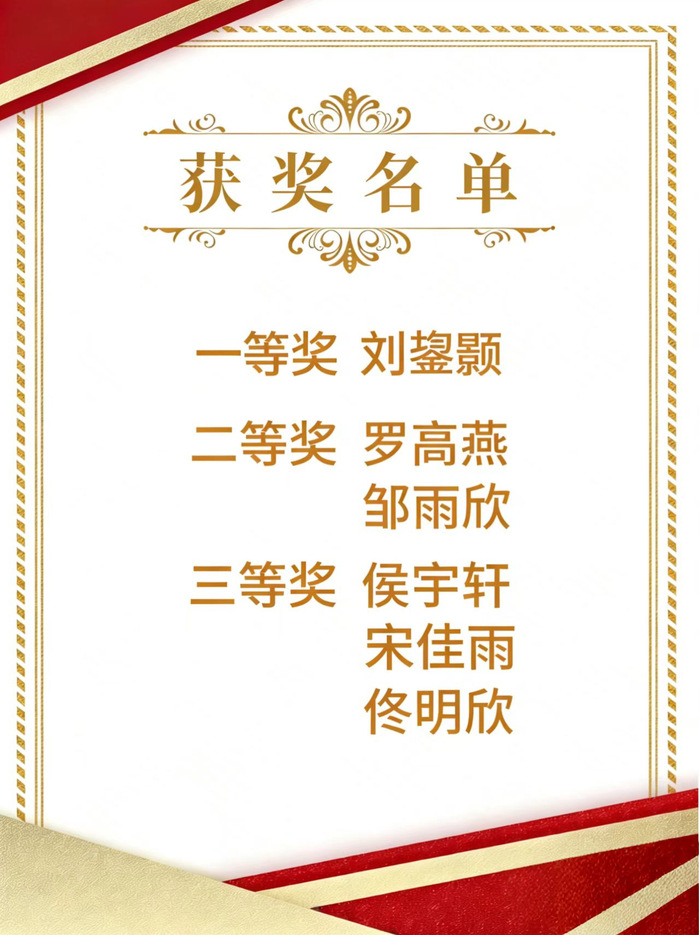 经过激烈角逐,活动按积分排名评选出一等奖1名、二等奖2名、三等奖3名。
