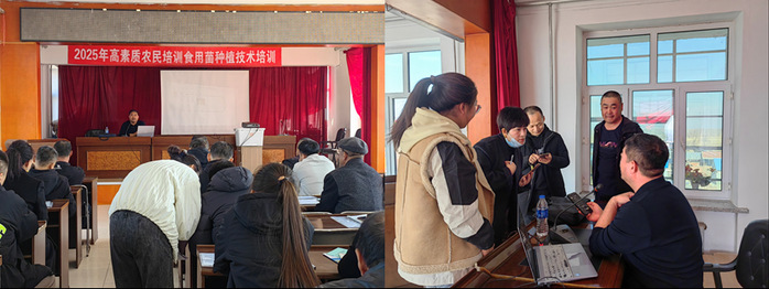 图1 克尔台乡高素质农民培训食用菌种植技术培训现场