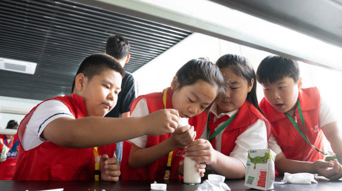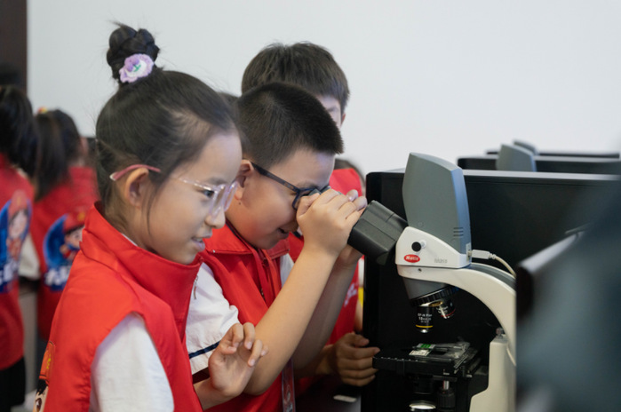 研学活动的第一站来到了生物学基础实验教学中心,同学们在研究生志愿者的指导下进行了“看得见的微观世界”、“酸奶是怎样炼成的”及“菌绘世界”三个生动有趣的科学实验。