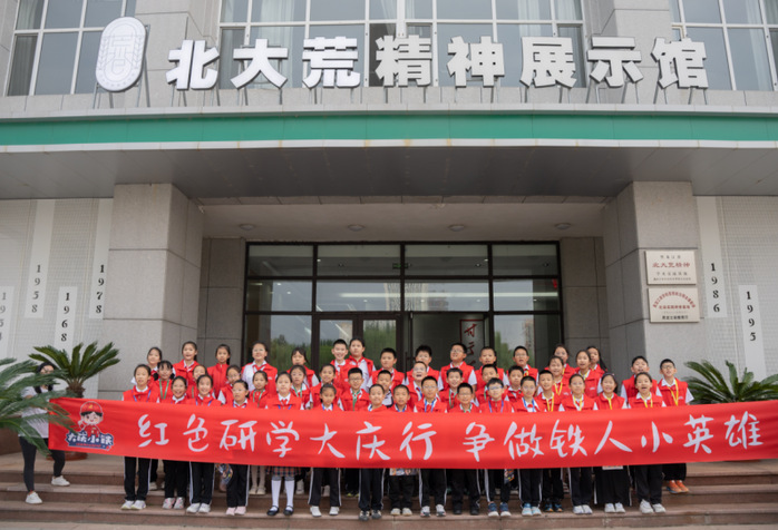 研学活动的第三站是北大荒精神展示馆,小学生们在此学习到北大荒开发建设的厚重历程和艰苦奋斗的感人事迹,坚定了弘扬和传承北大荒精神的决心。