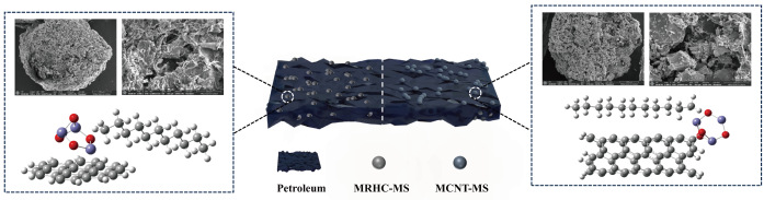研究结论确证了MCNT-MS在石油污染修复方面的应用潜力:(1)MCNT-MS的孔隙率、比表面积、孔体积、磁强度和表面功能基团均优于MRHC-MS。(2)MCNT-MS的功能基团上细菌分布更加均匀。(3)MCNT-MS的吸附过程符合伪二级动力学模型和 Freundlich模型,其吸附效果优于MRHC-MS。(4)MCNT通过界面轨道杂化实现了高效的电子传输和活性位点优化,具有窄能隙特性,显著提升了复合材料的磁性、催化效率和吸附效果。(5)MCNT-MS在石油降解方面符合二级降解动力学。